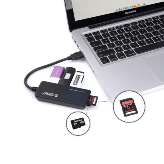 هاب یو اس بی سه پورت به همراه کارت خوان اوریکو مدل Orico 3 Port USB Hub with TF and SD Card Reader (H3TS-U3)